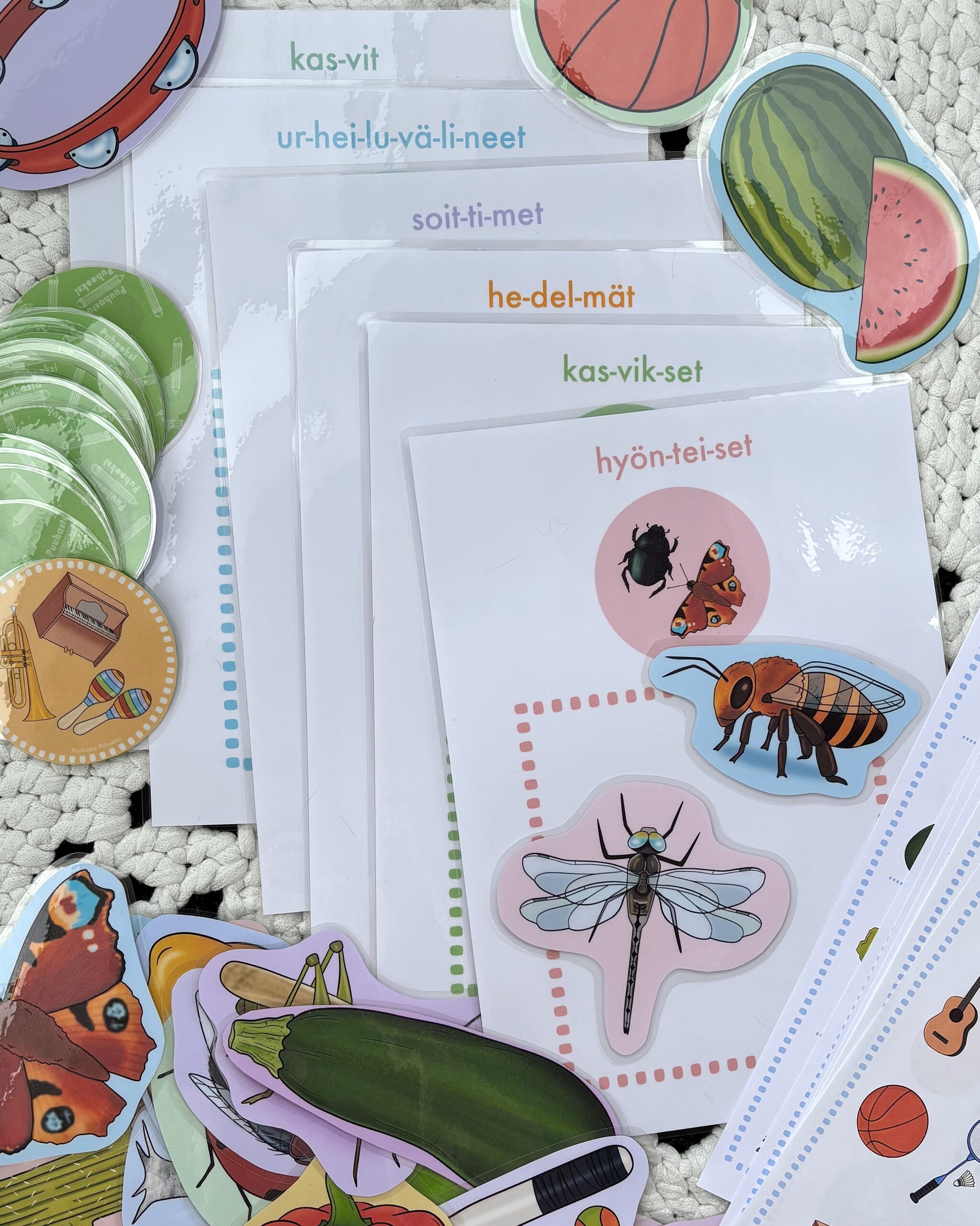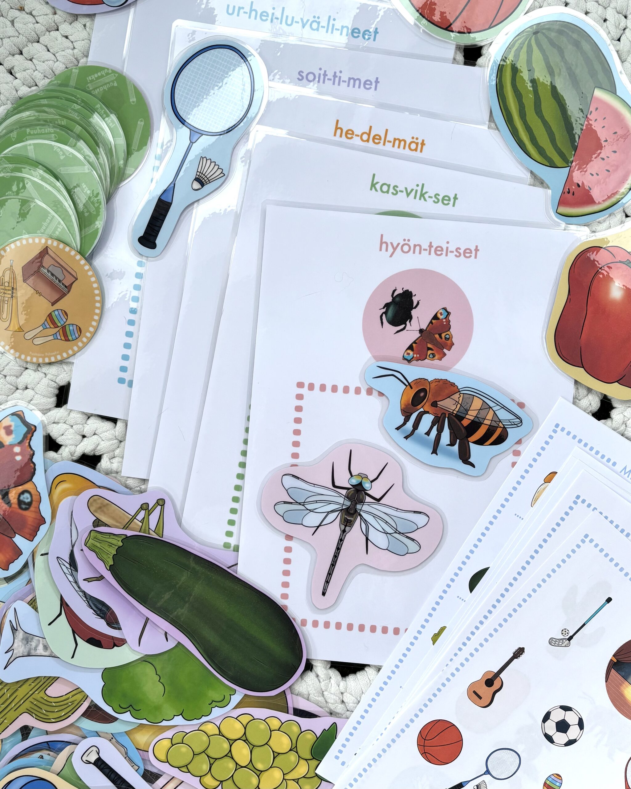 Yksi tuotetiedosto sisältää käyttöoikeuden yhdelle ammattilaiselle tai yhdelle varhaiskasvatusryhmälle/koululuokalle. Mikäli haluat saman materiaalin käyttöön useammalle ryhmälle tai luokalle, sinun on ostettava jokaiseen ryhmään oma tiedosto. Voit käyttää tuotetta luokassasi, varhaiskasvatusryhmässäsi sekä omien asiakkaidesi kanssa. Voit tulostaa tuotetta kotikäyttöön omalle asiakkaallesi tai oppilaallesi, jos koet hänen hyötyvän siitä. Materiaalin jakaminen kollegan tai tiimin kanssa on kielletty. Materiaalin kuvia ei saa kopioida. Lisää käyttöehdoista voit lukea täältä.