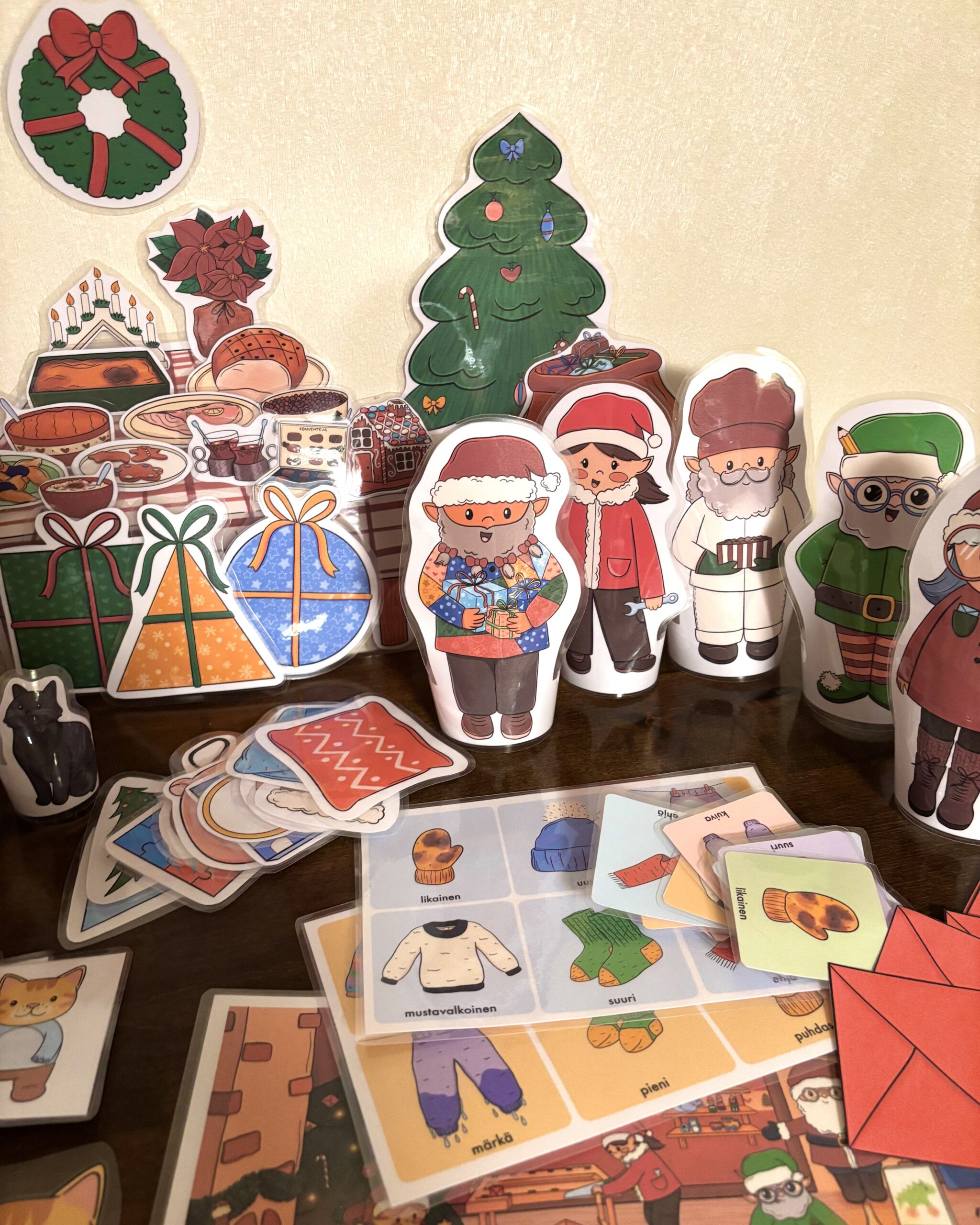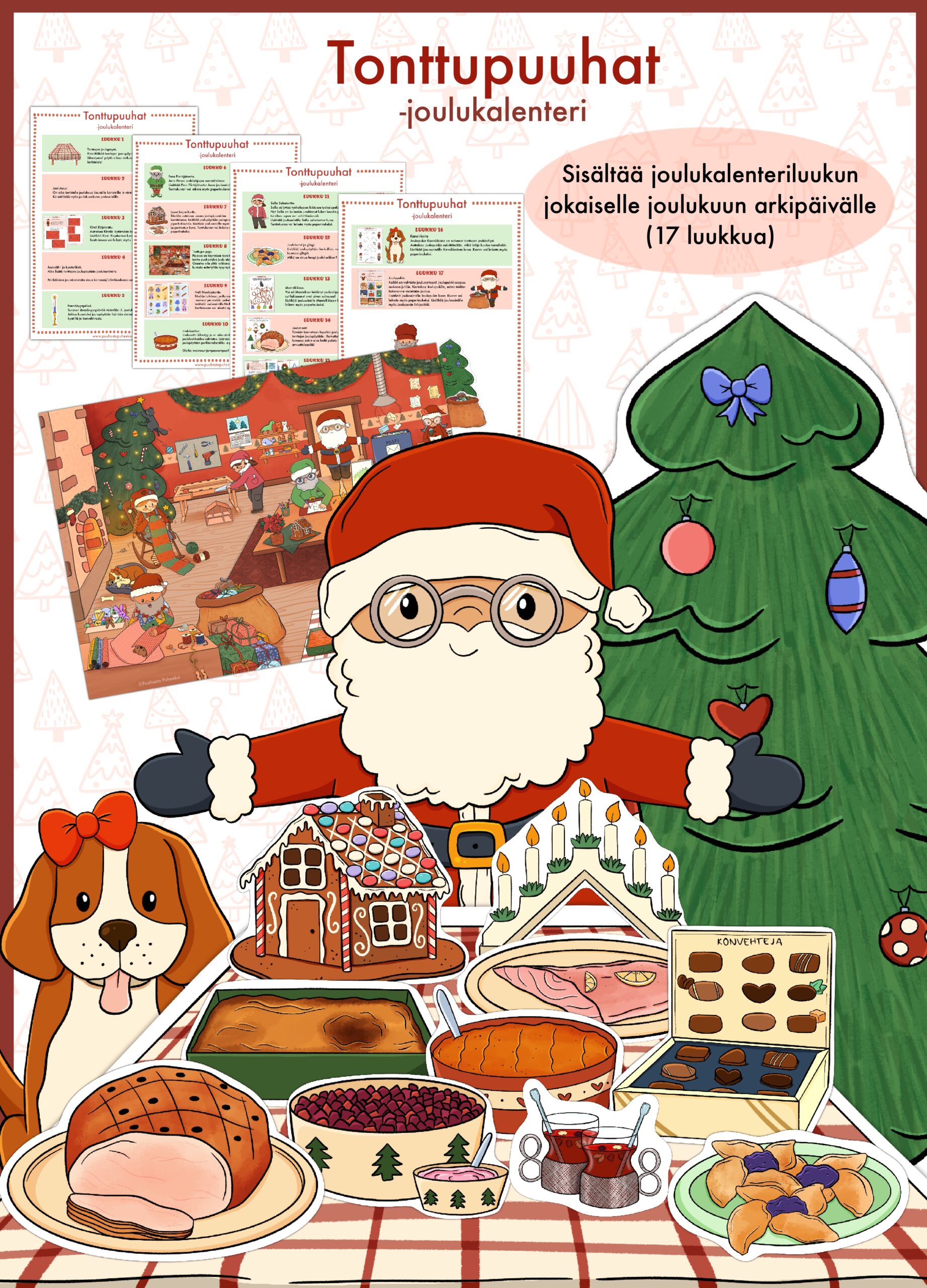 Materiaali on PDF-tiedosto (38 sivua) ja sisältää 17 joulukalenteriluukkua tehtävineen.